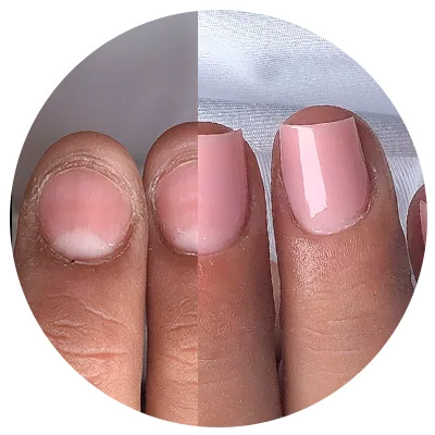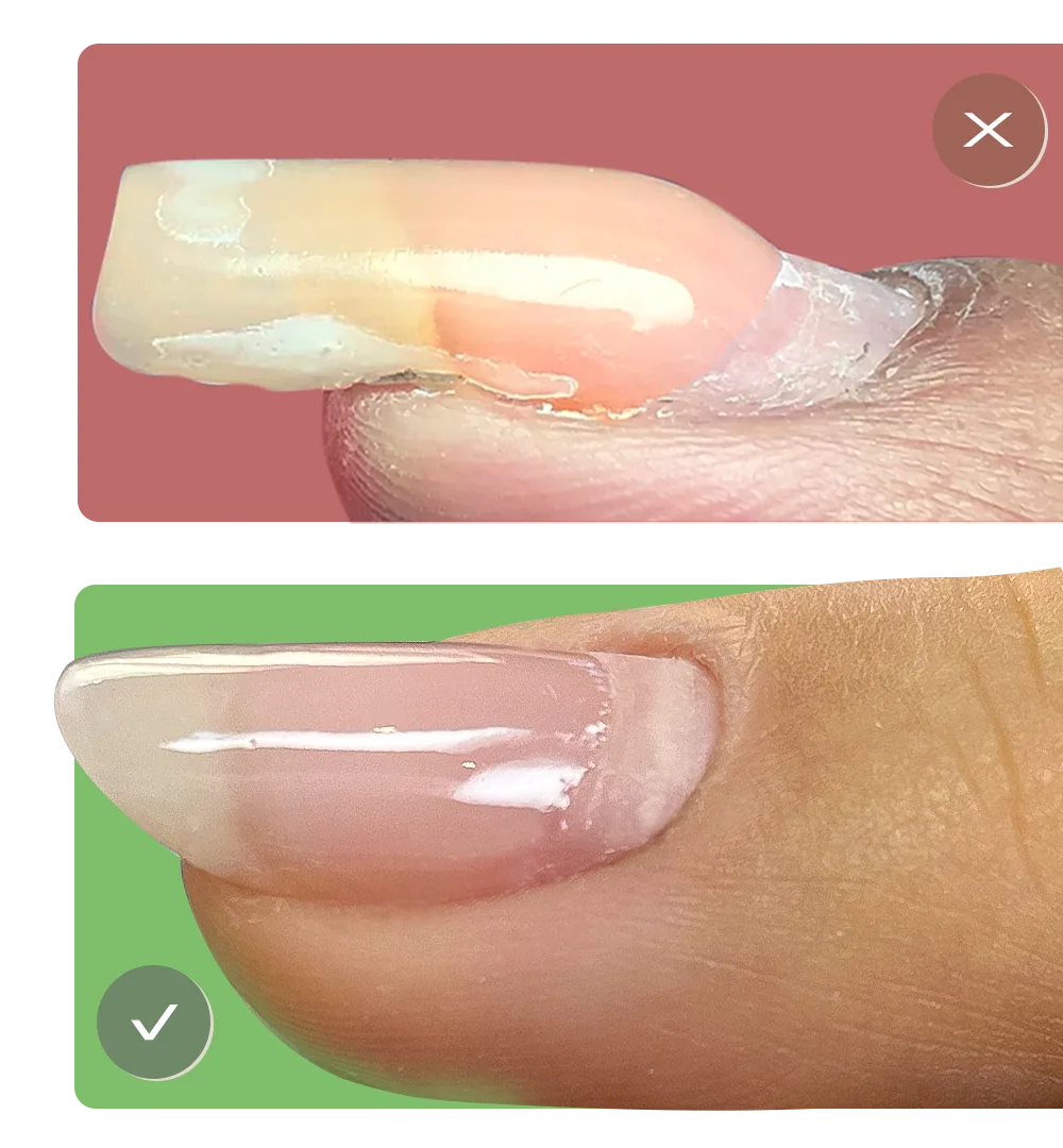 Camada segura e discreta de gel mantendo a naturalidade das suas unhas e fortalecendo-as de quebras naturais.
